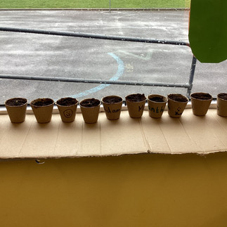 Bhíomar ag plandáil síolta biolar, cairéad, oinniúin, prátaí, sútha talún agus leitís. Scríobhamar an modh as Gaeilge freisin. We planted cress, carrots, onions, potatoes, strawberries and lettuce. We wrote the procedure in Irish also.